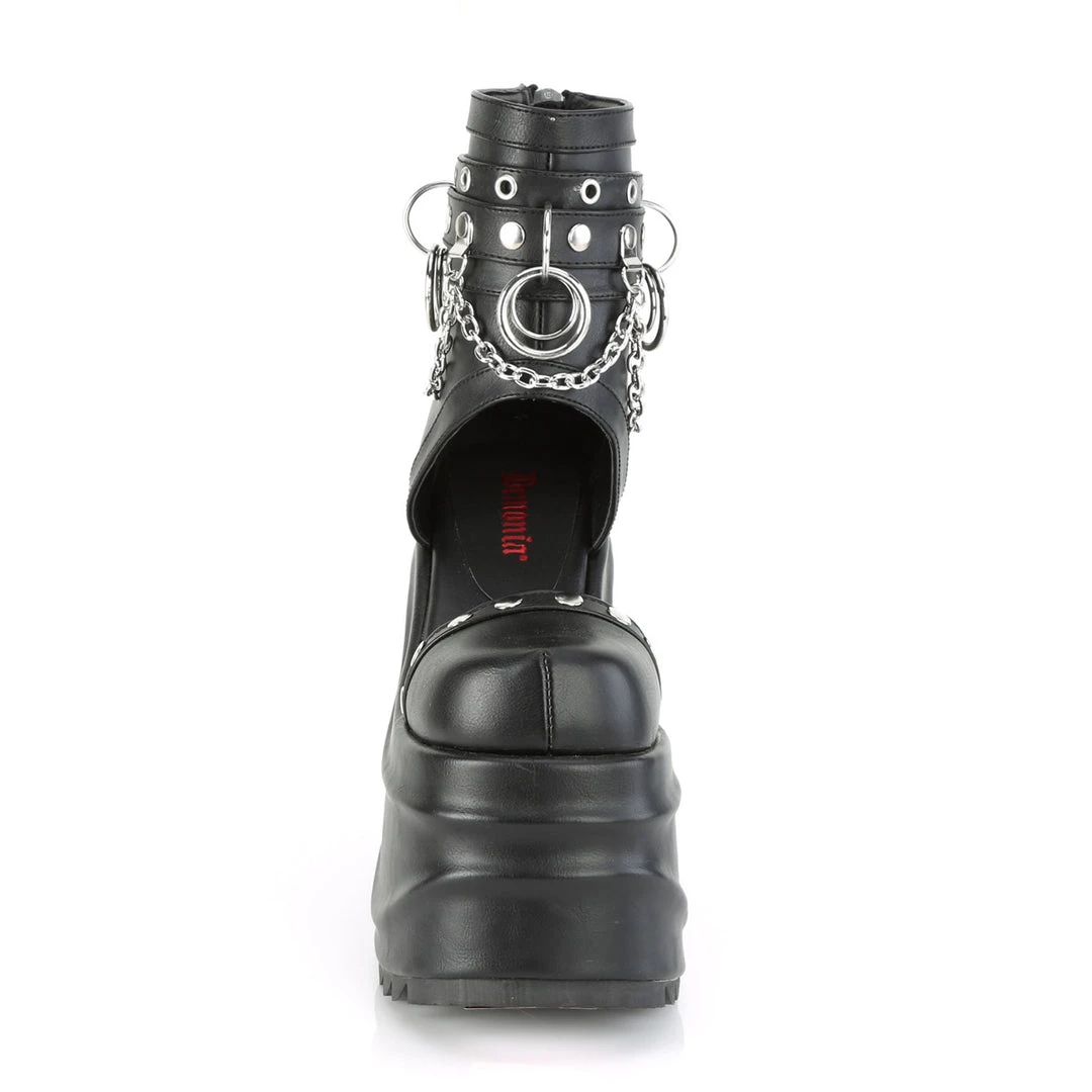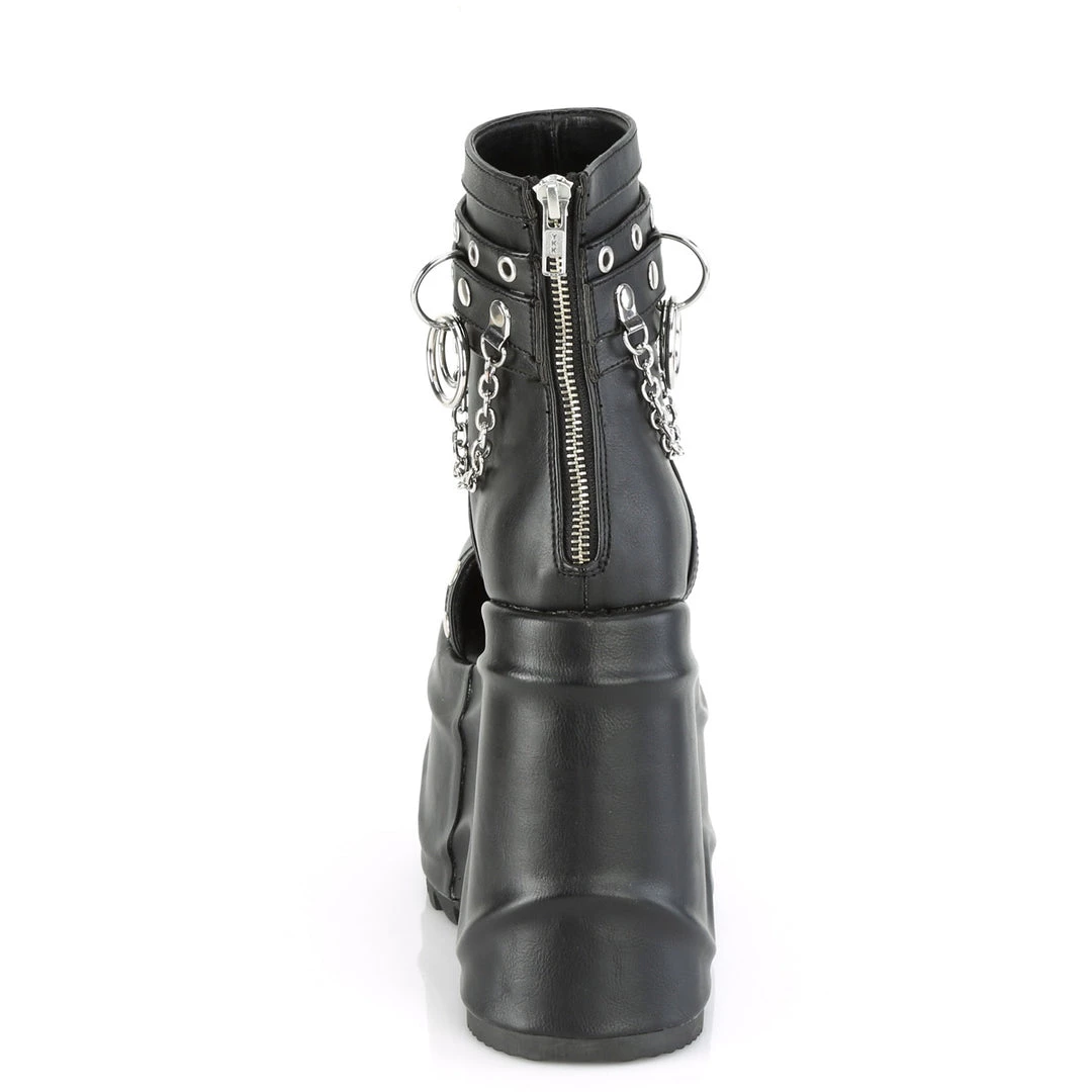 6″ (152mm) Wedge Platform Ankle Cutout Bootie Sandal Featuring Studding, D-Rings, Multi-Sized O-Rings & Hanging Chain Detail, Back Metal Zip Closure