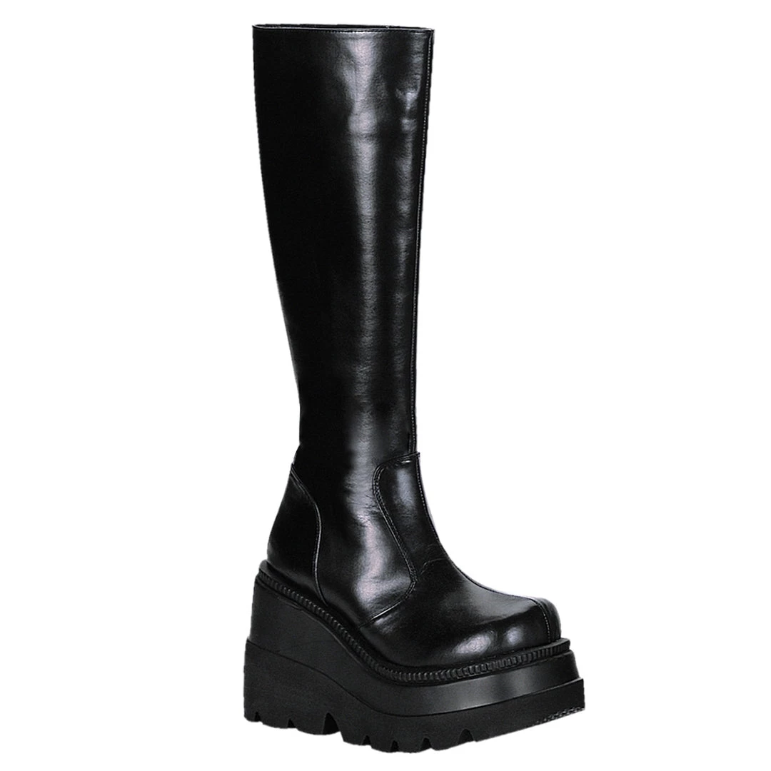 4 1/2″ (114mm) Stacked Wedge Platform Knee High Boot Full Inner Side Zipper