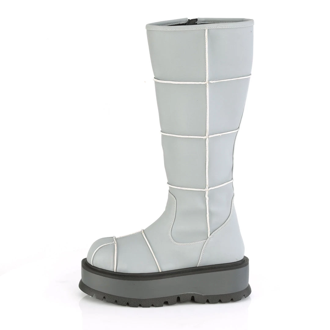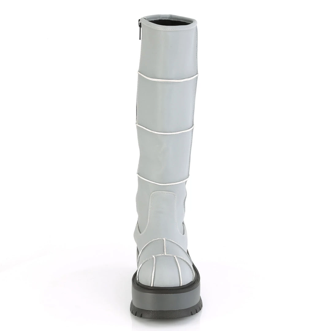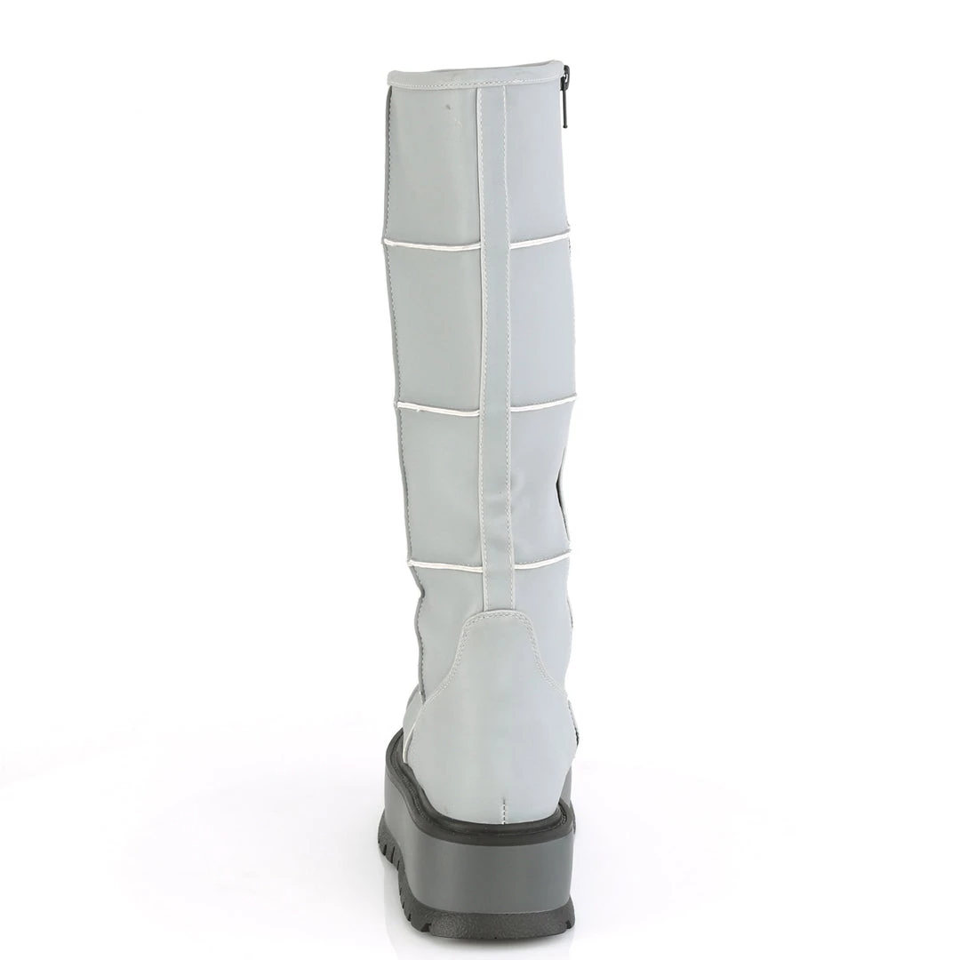 2″ (51mm) Platform Knee High Boot w/ Patching Details, Full Length Inside Metal Zip Closure