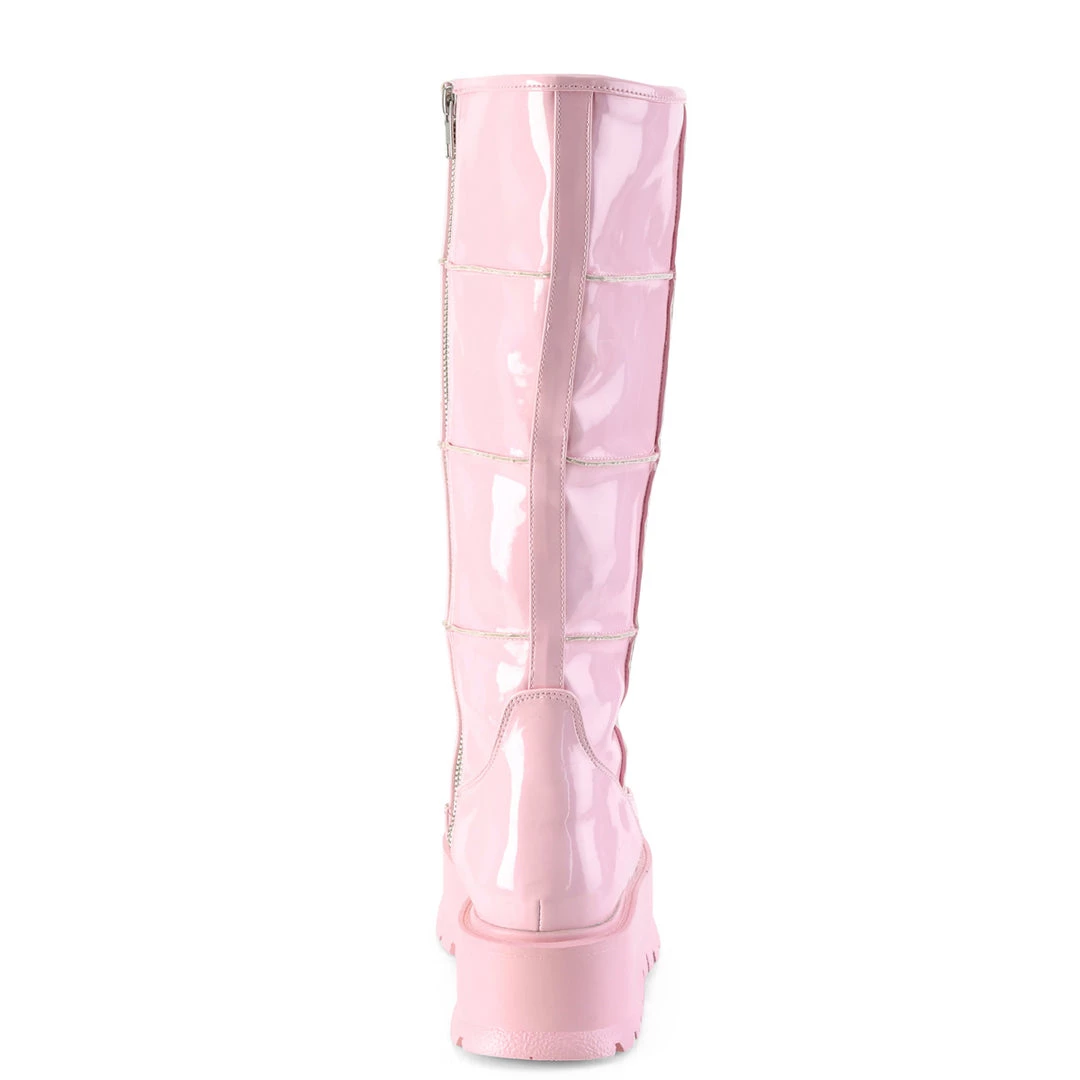 2″ (51mm) Platform Knee High Boot w/ Patching Details, Full Length Inside Metal Zip Closure