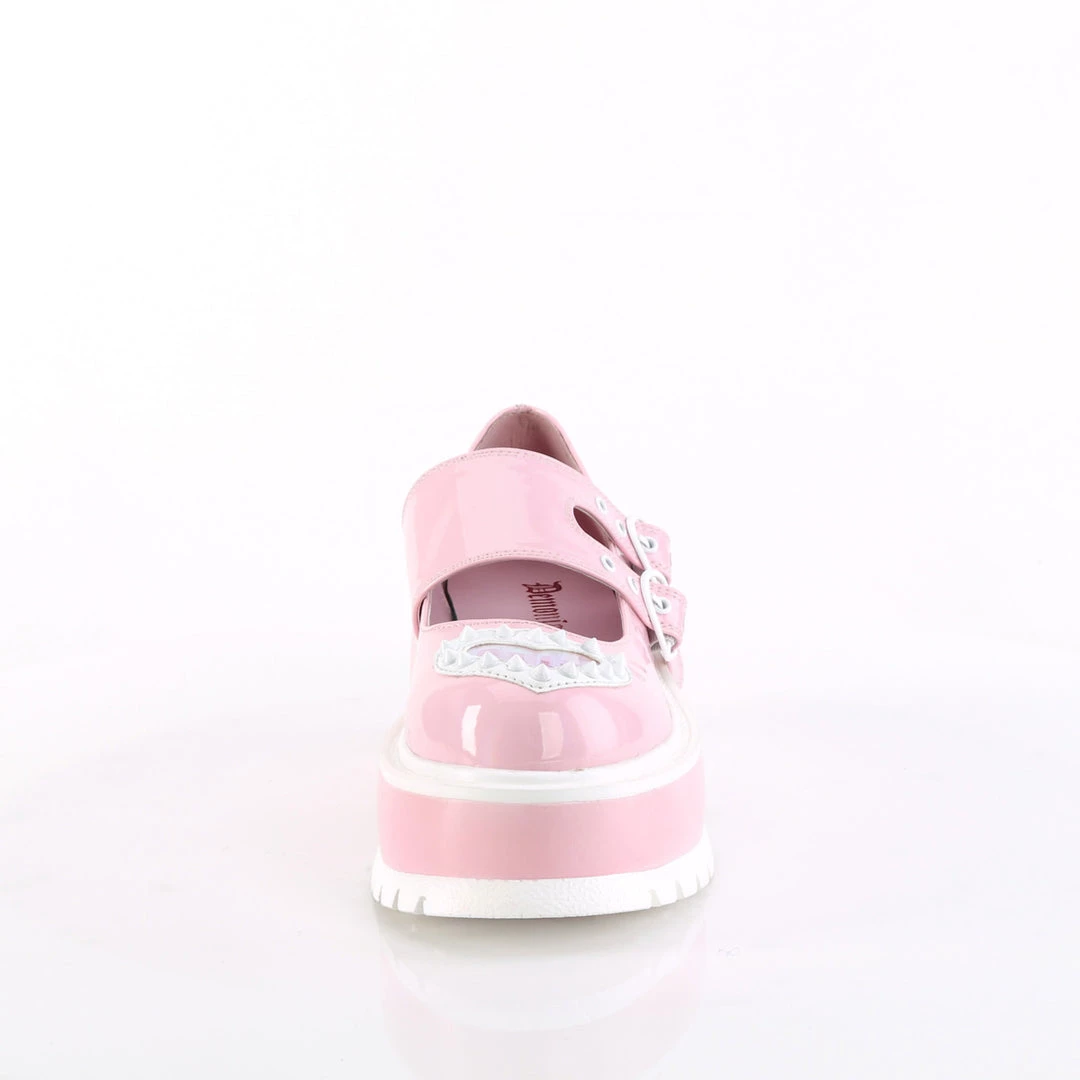 2″ (51mm) Platform Maryjane Featurning Double Heart Buckle Shield Strap & Cone Spike Studded Contrast Heart Design