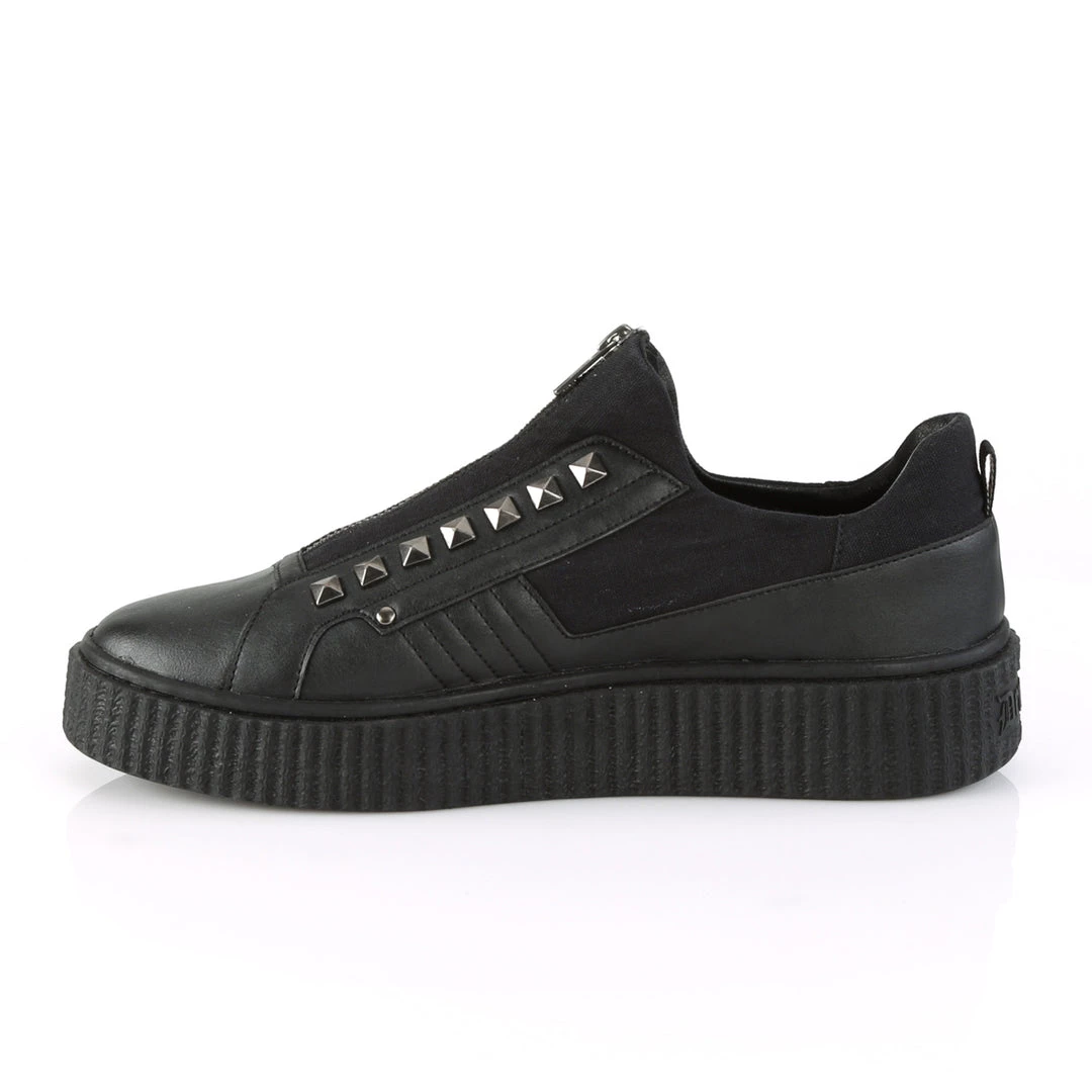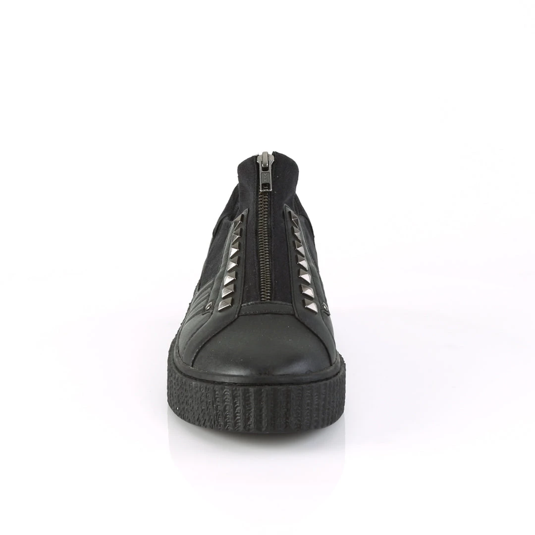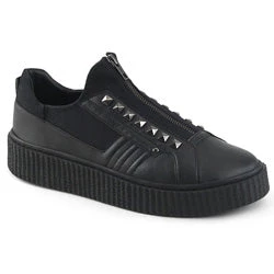 1 1/2″ (38mm) Platform Rubber Sole Low Top Round Toe Zip Front Creeper Sneaker Featuring Pyramid Stud Details Up the Front