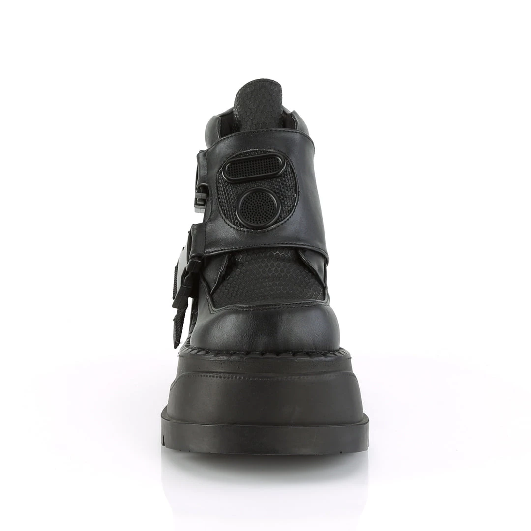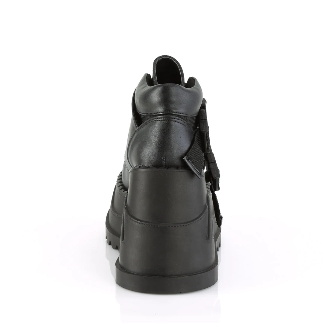 4 3/4″ (121mm) Wedge Platform Bootie Featuring Padded Ankle, Front Sheild w/ Snap Buckles and Ventilator Detail