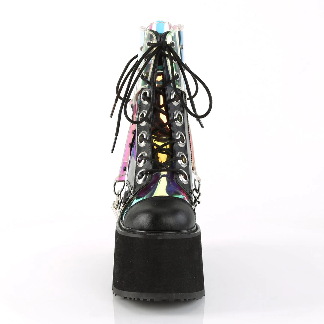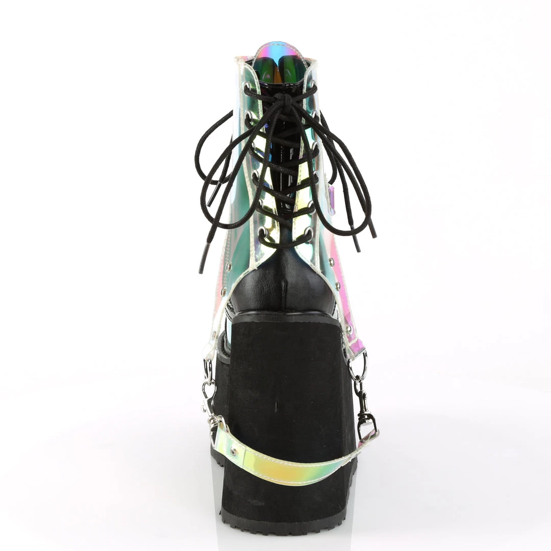 5 1/2″(140mm) Wedge Platform Lace-Up Front Ankle Boot Featuring Removable PVC Harness w/ Hanging Bondage Strap, Metal Inside Zip Closure