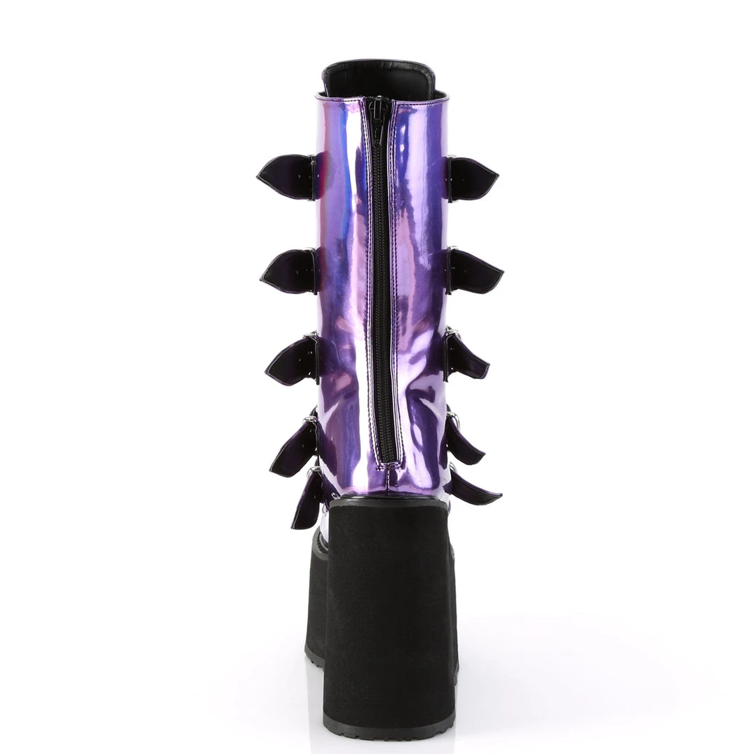 5 1/2″ (140mm) Platform Mid-Calf Boot Featuring 5 Buckle Straps w/ Heart Shaped Metal Plates at Center, Back Metal Zip Closure