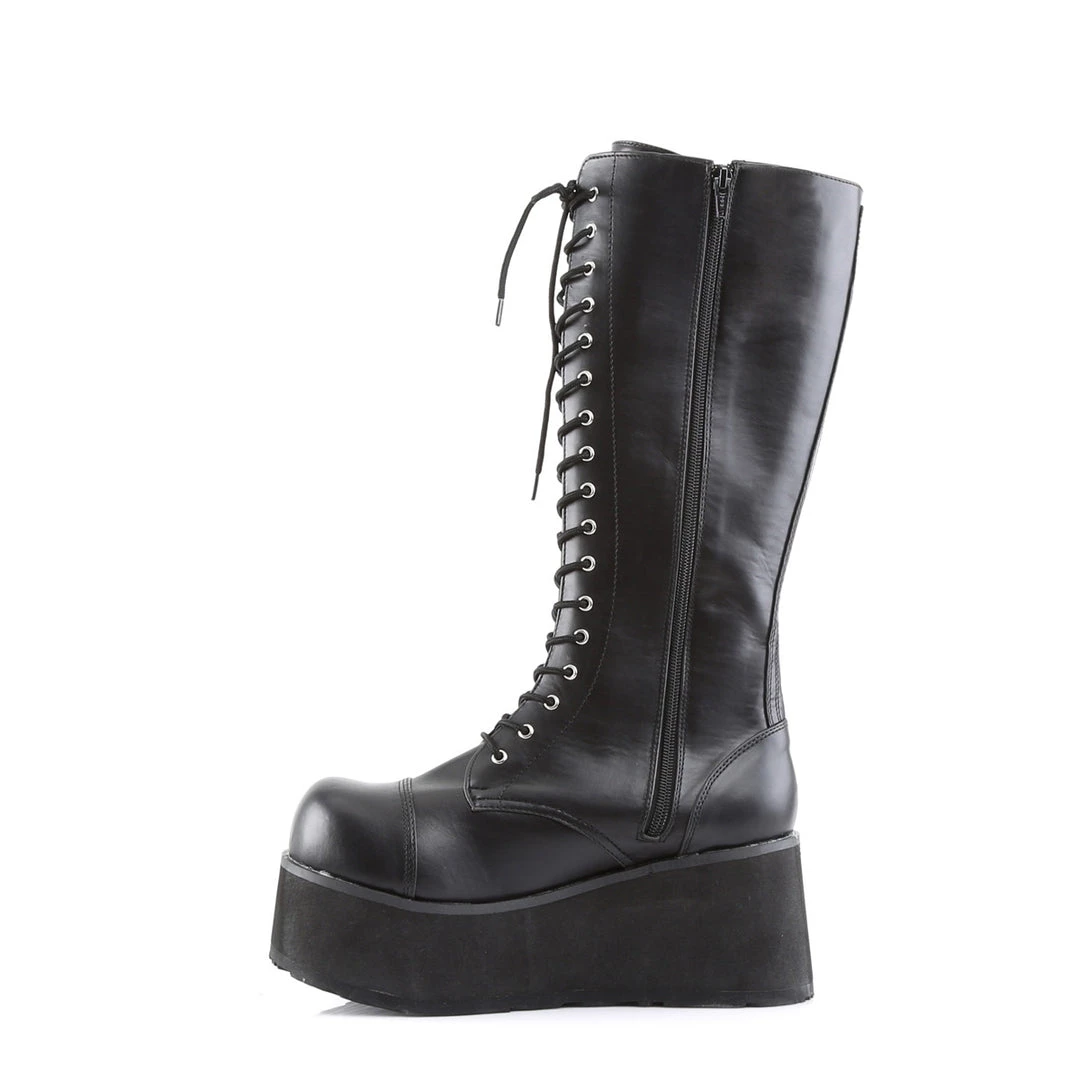3 1/4″ (83mm) Platform Goth Punk 17 Eyelet Knee Boot with Full Inner Side Zipper