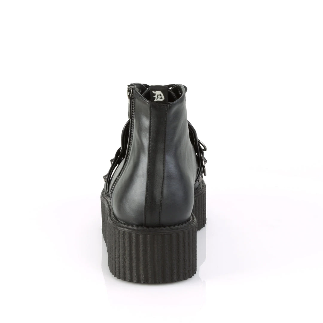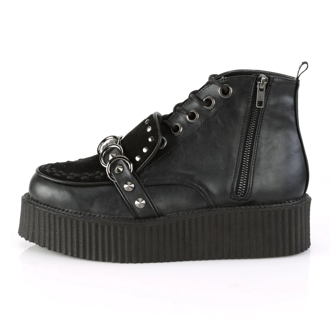 2″ (51mm) Platform Oxford Lace-Up High-Top Creeper w/ Flat Stud, Cone Stud, & O-Ring Details & Exposed Outer Zipper