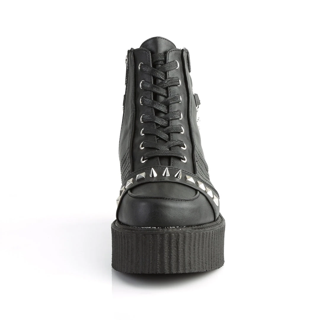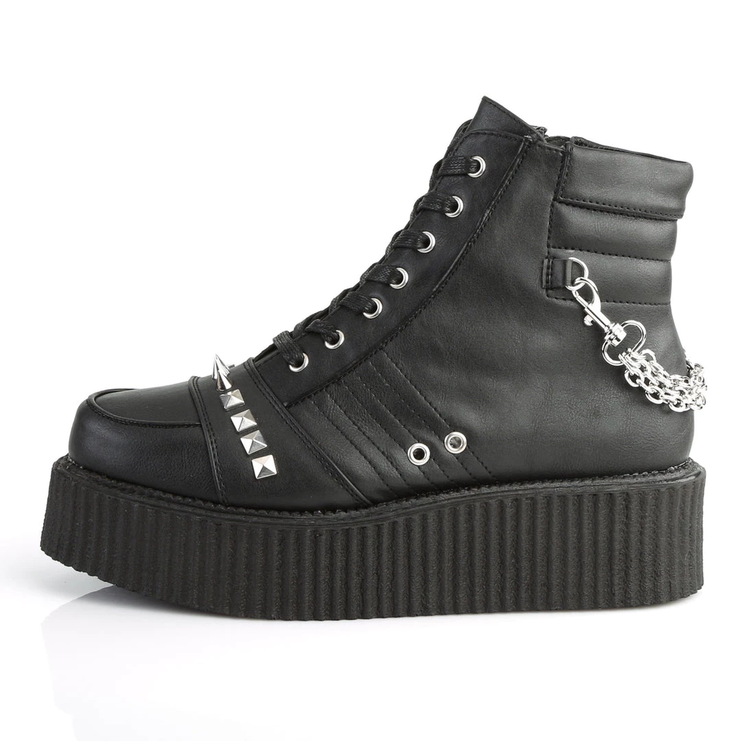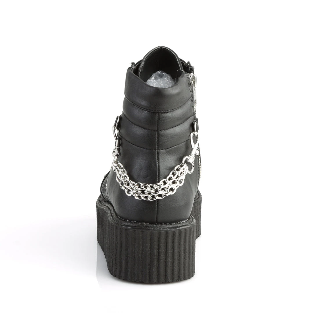2″ (51mm) Platform Oxford Creeper Bootie w/Stud, Spike, & Chain Details & Exposed Inner Side Zipper