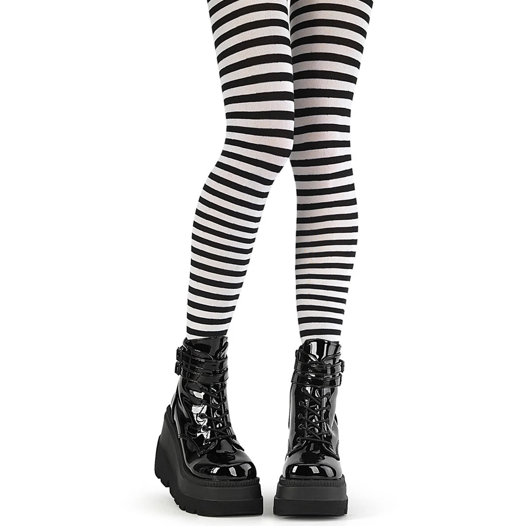 One pair of black and white striped pantyhose. Pair these with your favorite Demonia shoes to craft the perfect look.Â