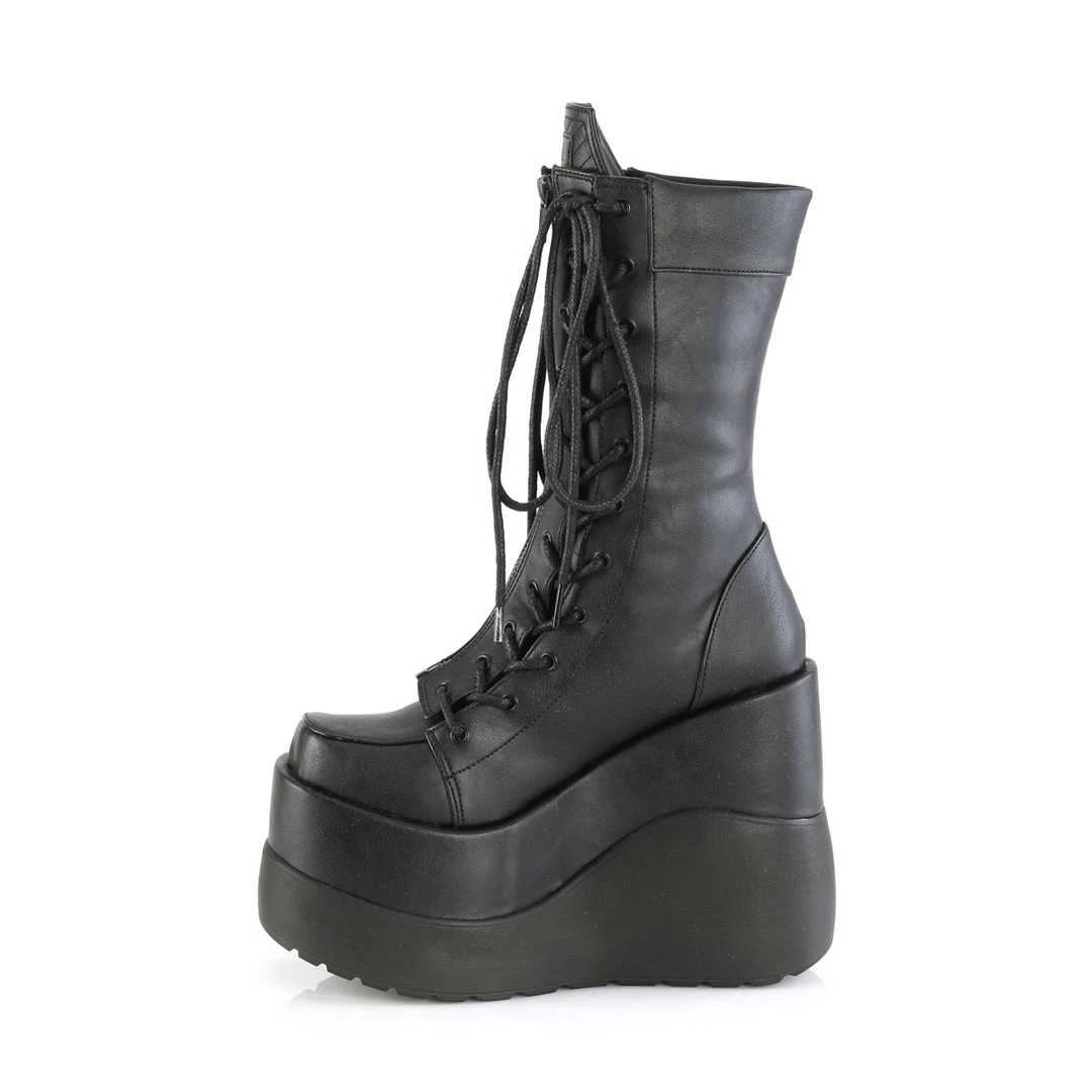 5″ (127mm) Wedge Tiered Platform Outside & Inside Lace-Up Mid-Calf Boot Featuring Coffin Shaped Tongue, Padded Collar & Center Zip Closure