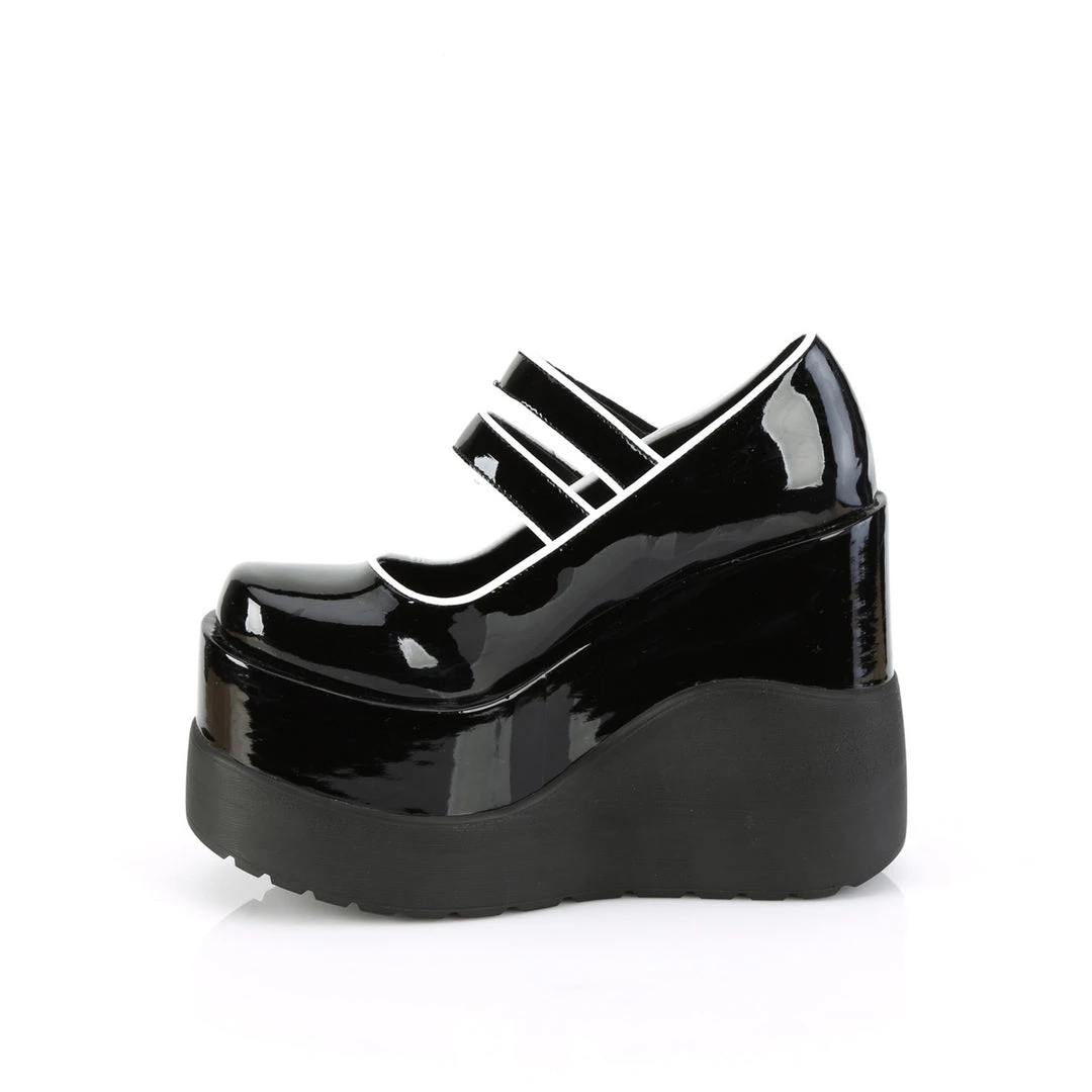 5″ (127mm) Wedge Platform Maryjane W/ Double Hook N’ Loop Straps, Contrast Piping & Buttons