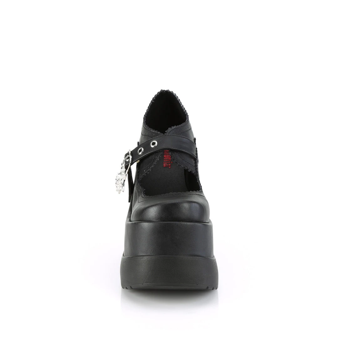 5″ (127mm) Wedge Platform Maryjane Featuring Heart Shaped Spider Web Buckle Strap and Scallop Edge Details