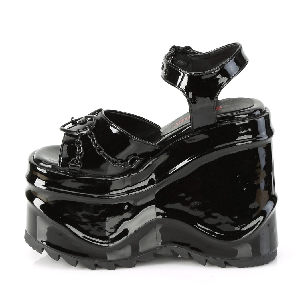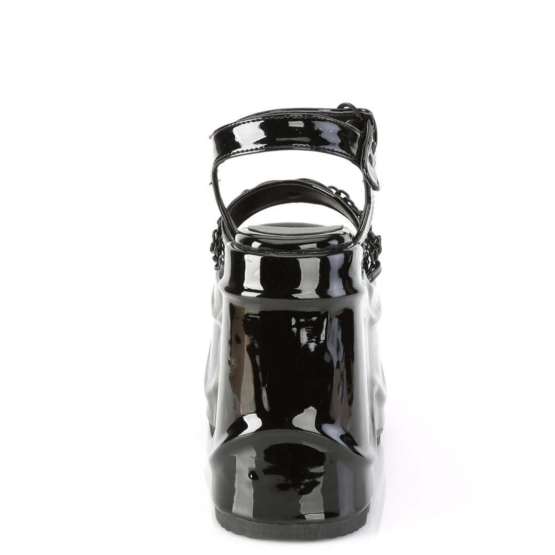 6″ (152mm) Wedge Platform Heart Buckle Ankle Strap Sandal w/ Heart & Chain Detail on Vamp