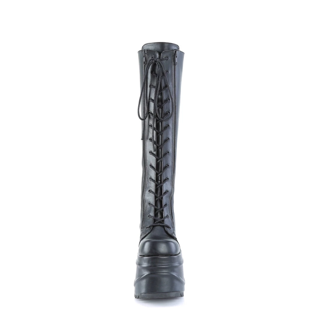 6″ (152mm) Wedge Platform Lace-Up Knee High Boot, Featuring Full-Length Double metal Zipper in the Front, Full Back Metal Zip Closure